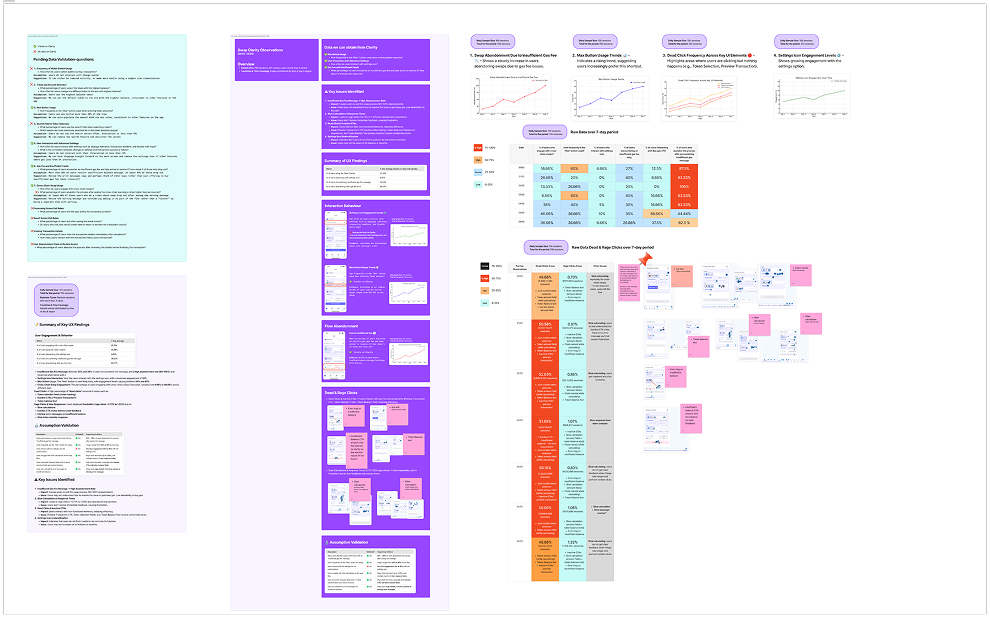 The next step involved user interviews to uncover the “why” behind user behavior — insights that would inform a more intuitive, data-driven redesign of the swap experience.