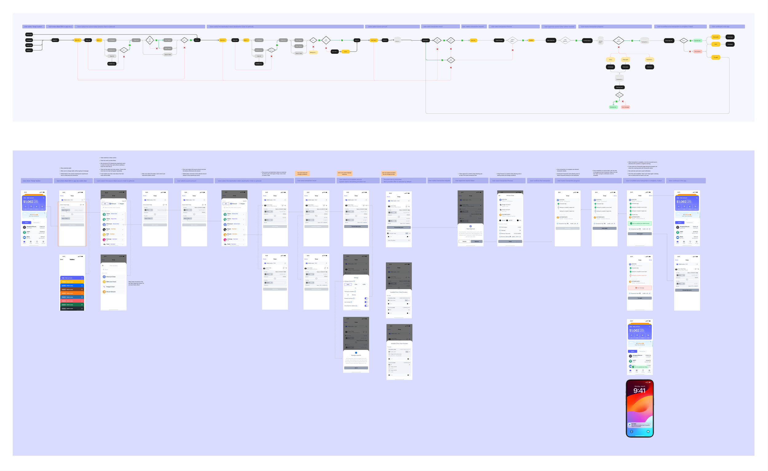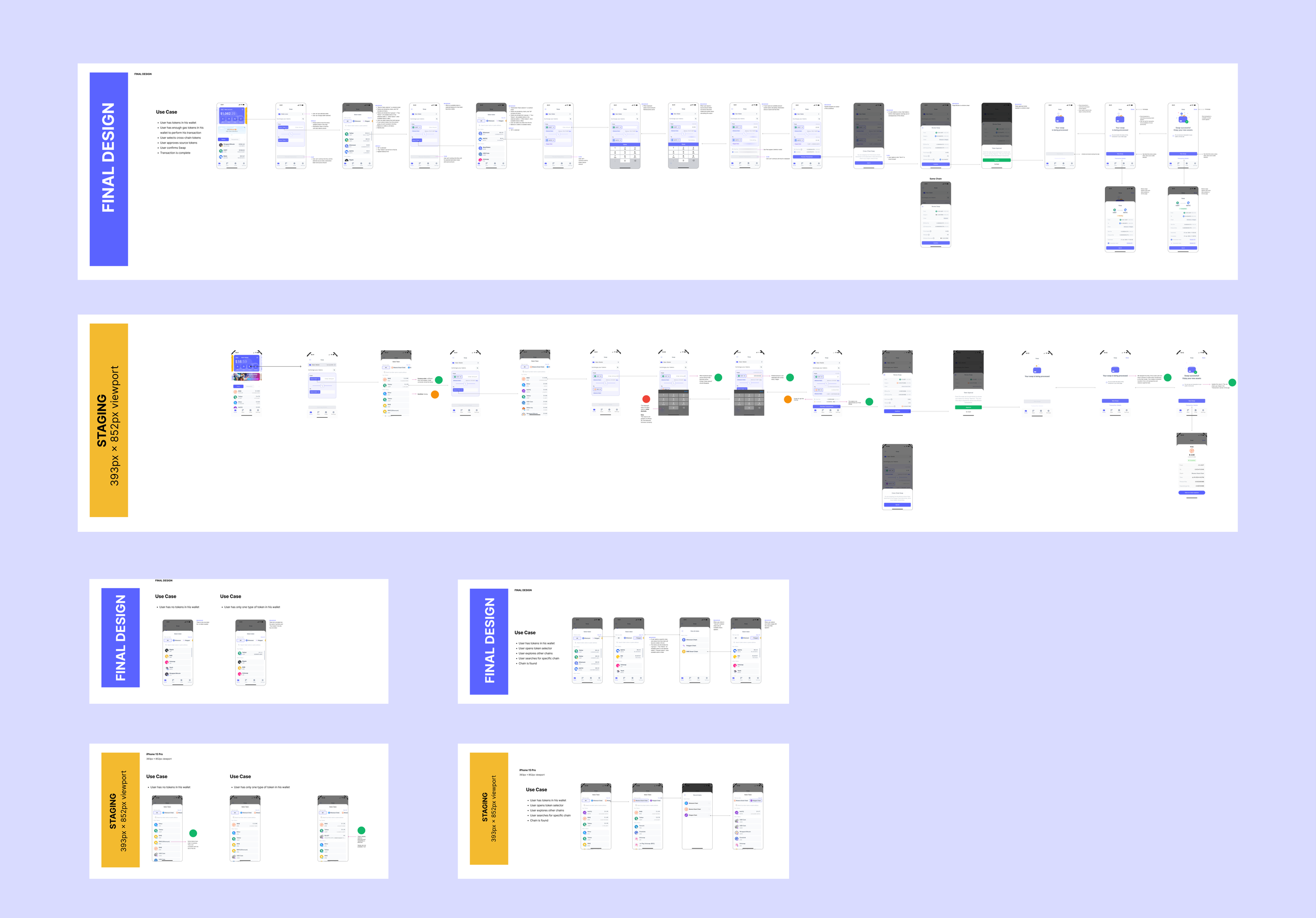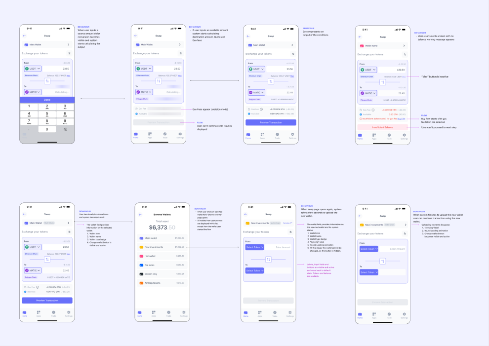 The existing swap feature only supported same-chain transactions and had an outdated design. The goal was to introduce cross-chain swaps through a third-party SDK while ensuring a frictionless, intuitive experience that concealed technical complexity from the user.